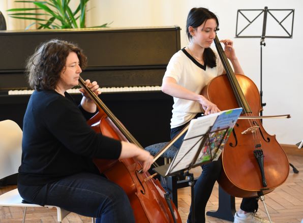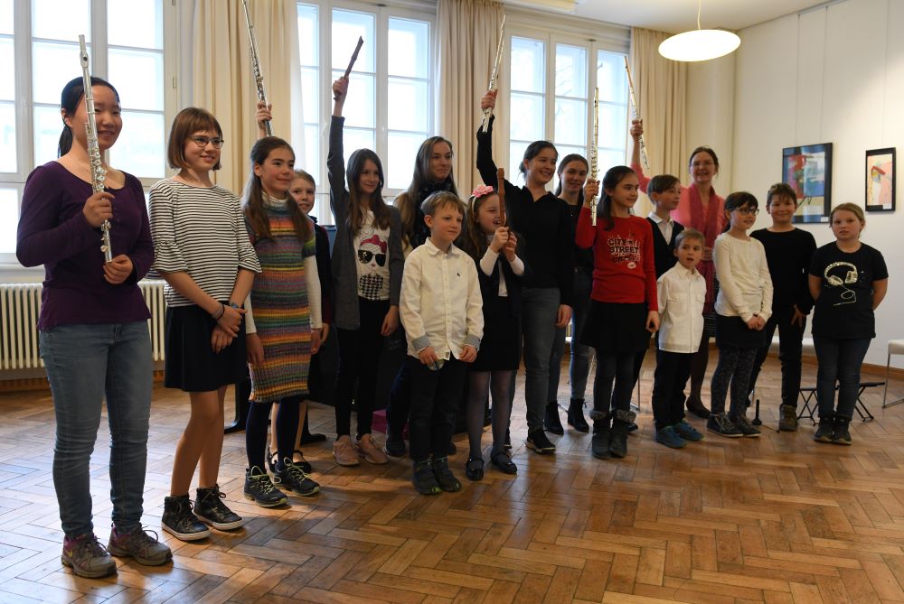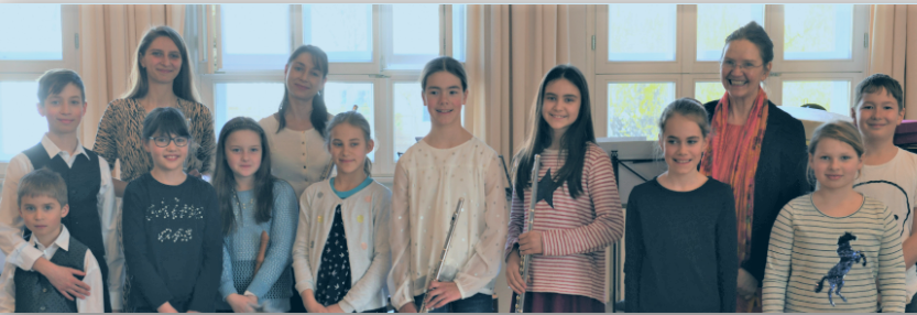 Flötenkanon, begleitet mit Cello, von großen und kleinen Schülerinnen