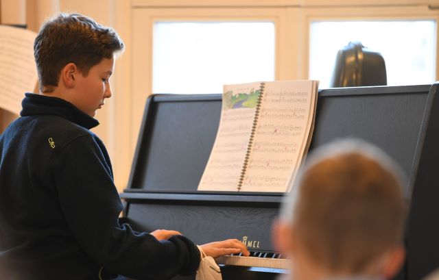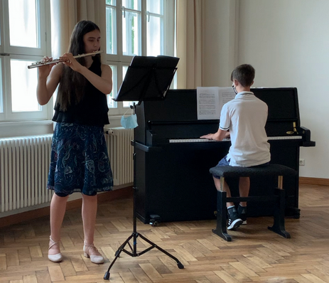Max spielt souverän die Sonatine G-Dur von Muzio Clementi, David die Musette von Johann Sebastian Bach und Lea wagt erste Klänge mit der Lokomotive „Tschu Tschu“.