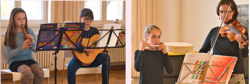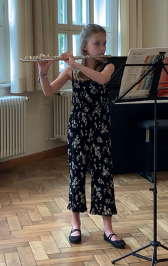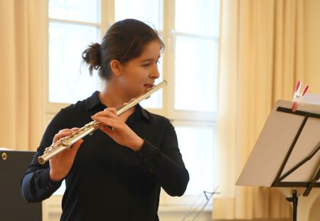 Nach zwei Jahren Unterricht spielt Mathilda bereits mehrere Duette mit anderen Kindern. „Yesterday“ von den Beatles und „Mexican hat dance“ zählen zu ihren Favoriten. Caren liebt die Harmonie der Mathematik und jene von Johann Sebastian Bach. Letztere erklingt in einem Solostück aus den Suiten für Cello solo, arrangiert für Flöte. Die beiden Jugend-musiziert-Preisträgerinnen Helena und Lena tragen einen Teil ihres Wettbewerbsprogramms vor.