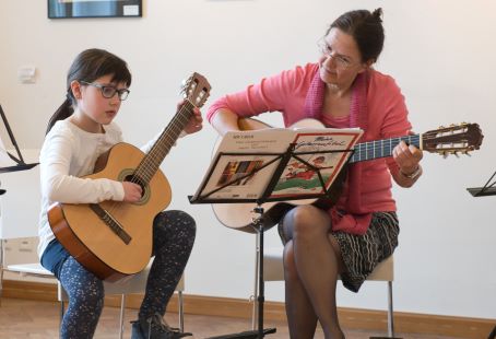„Come follow me“, das Motto des diesjährigen Schülerkonzerts forderte zu musikalischen Spaziergängen und im zweiten Teil vermehrt zum Tanz auf. Dank gelockerter Regelungen durften 75 Personen den großen Saal des Holzerbaus füllen. 20 Schülerinnen und Schüler waren der Einladung gefolgt, für ihre Familien einen musikalischen Nachmittag zu gestalten. Für vier Spieler und Spielerinnen war es sogar das erste Konzert.